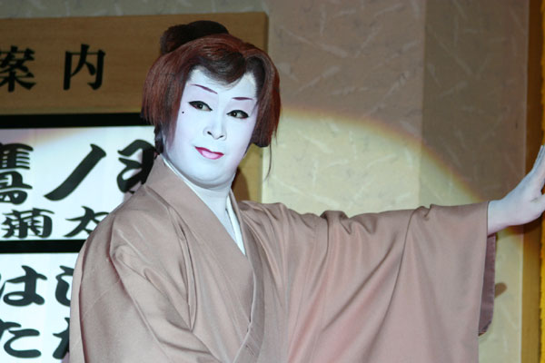 劇団鷹ノ羽 「みかわ温泉海遊亭」公演 2006年02月18日(土) 昼の部舞踊ショーのものです。 ってか、昼の部しかありません。(^^) 正月休みにみかわの美川さんを観に行った時ビンゴゲームで招待券(食事付)が当たったので観にいかなくてはと思っていたら、もう2月中旬。有効期限が2月いっぱいで切れるためみかわの鷹ノ羽さんを観に行ってきました。そんなわけで何の情報も無く全く期待して無く行ったら嬉しい誤算でした。\(^o^)/ 座長は29歳の梅沢菊太郎座長、座長の妹さんの梅沢菊之助、若頭梅沢博樹、若手梅沢星明、梅沢道矢、入団4ヶ月の梅沢あすかが主なメンバーです。確か最近の華舞台にも掲載されていたと記憶してます。 お芝居は「江戸の五月雨浪花の時雨」でした。 主演菊太郎座長(大御寮はん役、所謂店の主)。出演者はちょろ松役菊之助ちゃん、若御寮はん役あすかちゃん(入団4ヶ月の新人さん、将来が楽しみです)、若旦はん役博樹若頭とたったの4人でした。全2幕のお芝居ですが1時間20分めちゃ楽しませてくれました。座長は女形のお芝居だって言われたら、おばあさん役なので出来ないと言っていたそうです。座長がやらなくてどうするってことで渋々やったそうですが、これがなかなか素晴らしい!熱演と言いましょうか怪演?! 菊太郎座長が大衆演劇は大筋は有るがお客さんの反応を見て芝居をその場その場で変えていくものだと言われてました。そうそう、まさにこれが大衆演劇なんです!! これを聞いたとき目から鱗が・・・ ここから菊太郎ワールドにハマってしまいました。 舞踊ショーは、座長女形を二つと立ちと船頭小唄をやられました。お芝居でのあのばあさんが、艶やかな女形で登場した時は全く別人かと思いました。座長の女形凄く良いです。(^_^)v で客席まで降りてきて(まあここまでは皆さんやられますが)、お客さんの目の前に座りお客さんとスキンシップ!!こんなの初めて観ました。それからこんな事が。私の足が少し出ていて座長が通るとき、ほんの少し私の足にあたったのです。すぐさま座長に「御免なさい」と言われた私は照れてしまいました。(^^ゞ あと菊太郎座長は、口上挨拶上手過ぎー!! 愛知県人は、困っている人を見ると助けてあげたくなると言われてその気になってると・・・そのまま劇団グッズ販売へなだれ込みました。(^_^;) 魅力いっぱいの菊太郎座長です。 座長の妹さんの菊之助ちゃんは立ち役が似合います。これが素晴らしく良いです。